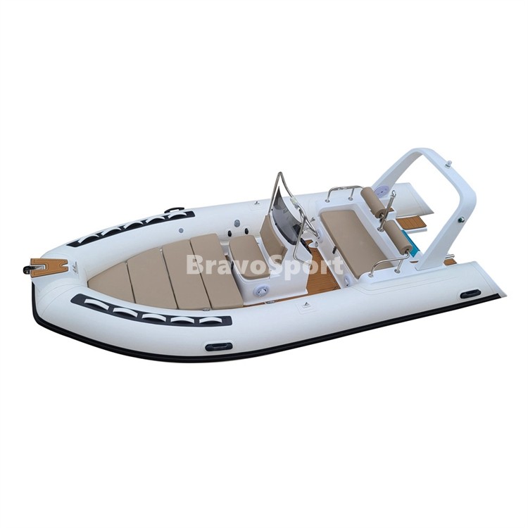 ü (1) Tube: PVC/Hypalon Valmex ü (2) V-shaped Hull: aluminum with anti-corrosion treatment and powder coating ü (3) Floor: EVA teak anti slip foam ü (4) Fuel tank: integrated under deck ü (5) Protection: bow protection, anti-slip pad on float, anti-skid strips ü (6) Self-draining cockpit ü (7) Anchor locker with davit
